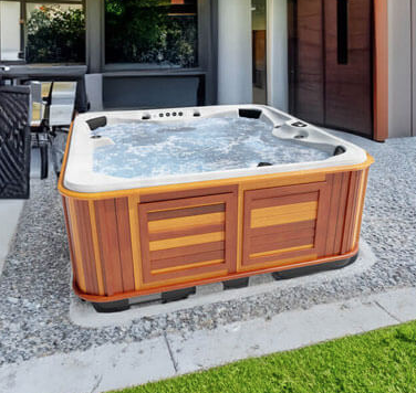 A six-person private Arctic Spas hot tub is situated on the upper deck of the unit.