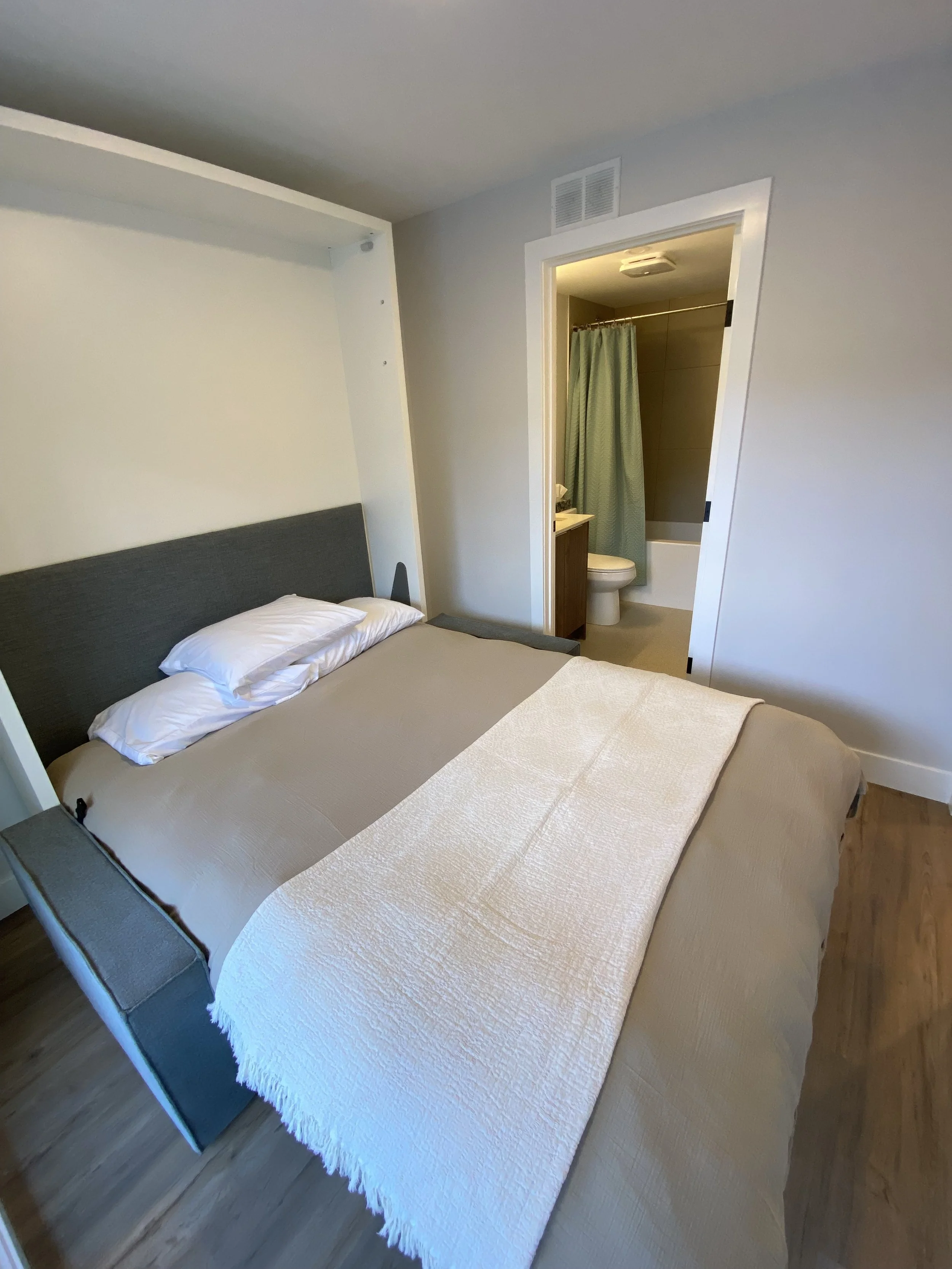 Queen murphy bed (converts into a sofa when bed is in upright/storage position)